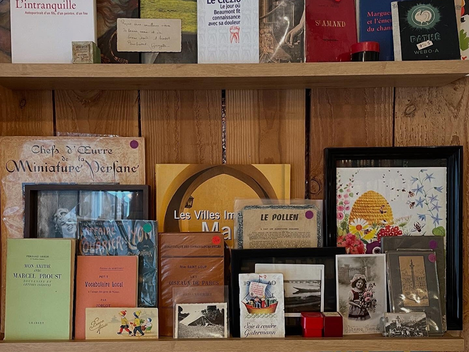 La librairie témoigne d’une affection particulière pour les beaux-arts et les ouvrages liés au régionalisme, reflets de l’attachement au patrimoine, aux territoires et à la mémoire locale. Cette attention se prolonge au-delà du livre : Charlotte enrichit régulièrement sa boutique d’objets choisis, comme des affiches ou des gravures anciennes, notamment des œuvres de Fernand Chalandre, offrant ainsi aux visiteurs une expérience culturelle plus large.