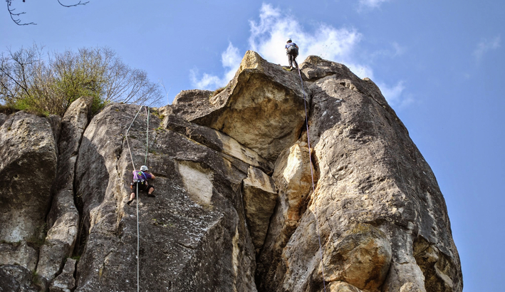 Crapauds Volants, Jeux Interdits, Super Donjon ! Non, ce ne sont pas des jeux vidéo, mais 3 des 350 voies du site d'escalade de Surgy. Partez à l'assaut de cette falaise calcaire des bords du canal du Nivernais : les Roches de Basseville.