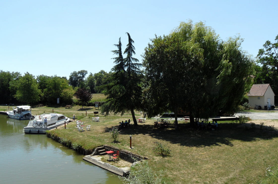 Arrivés dans les environs de Fleury-sur-Loire il est temps de penser à la pause déjeuner ! La halte nautique dispose d'un bar et d'un service de restauration. Après une sieste au bord de l'eau ou une balade sur le chemin de halage il est temps de remonter à bord, direction Decize.