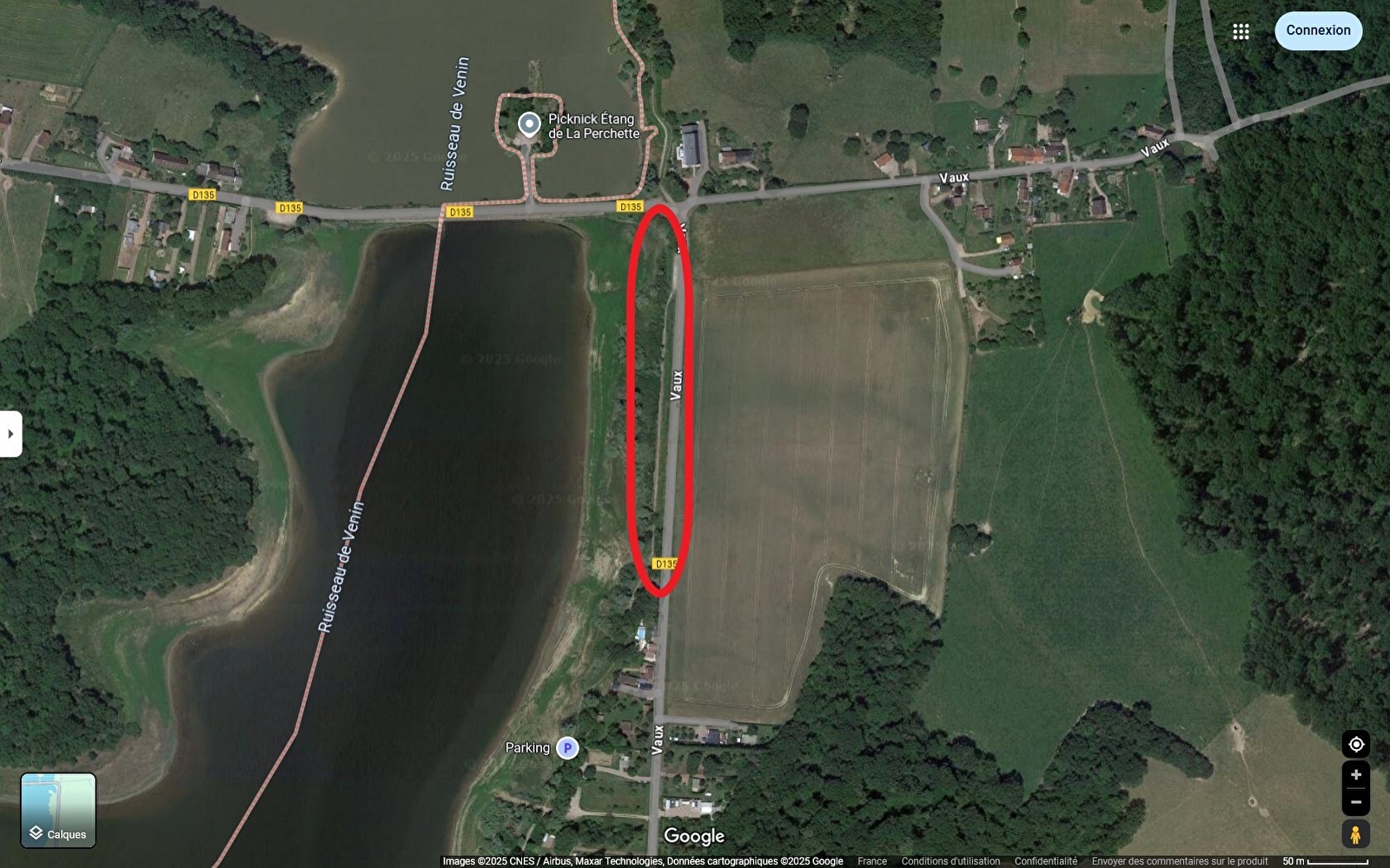 Descriptif techniqueDépart parking digue entre les étangs de Vaux et de la Perchette côté lieu-dit Vaux : coordonnées 47°11'27.7"N 3°37'04.4"E