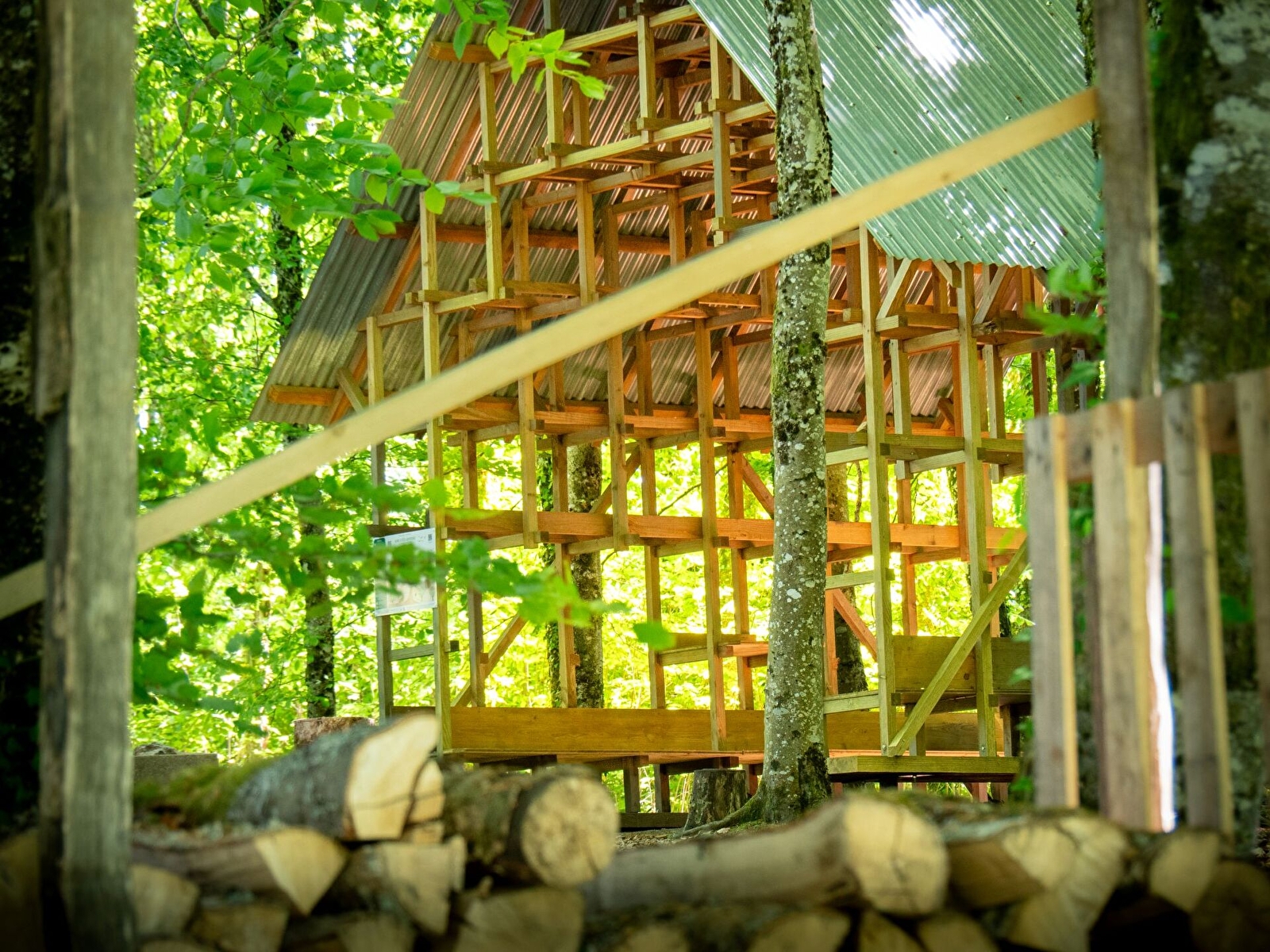 Une aire d'éco-bivouac a été installée en sous bois dans l'enceinte de la Maison du Parc. Deux cabanes y sont à votre disposition pour vous poser le temps d'une nuit, toilettes sèches et foyer viennent compléter cette offre. Un point d'eau potable est situé dans la propriété à 500m de l'aire d'éco-bivouac.