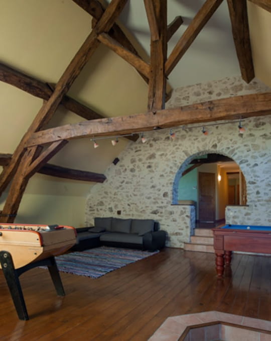 On craque également littéralement pour la salle de jeu à l’étage avec babyfoot et billard. Notre conseil : laisser les enfants faire quelques parties pendant que vous irez vous détendre dans le jacuzzi ou le sauna.