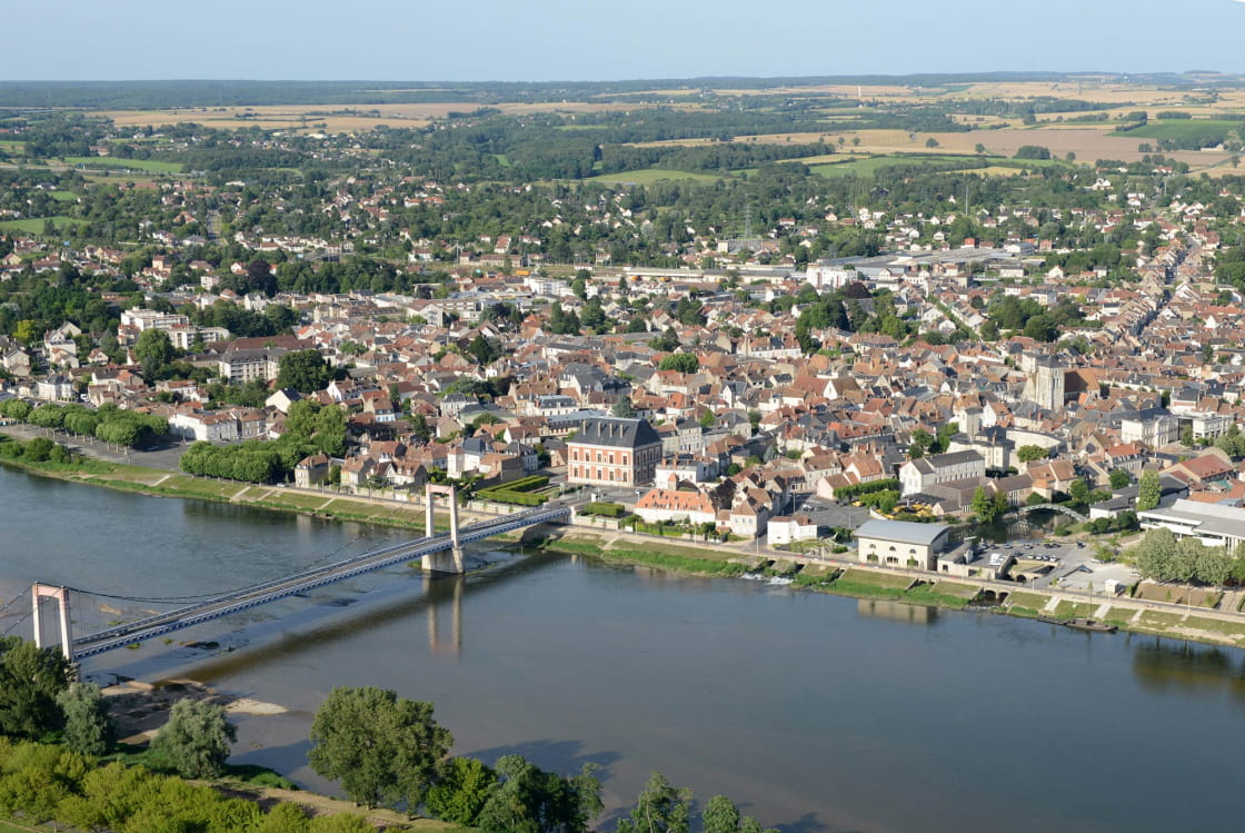 Première étape : L’aéroclub de Cosne-Cours-sur-Loire pour faire voler et rêver votre moitié en partageant à 2 un magnifique baptême de l’air au dessus des vignes et de la Loire sauvage.