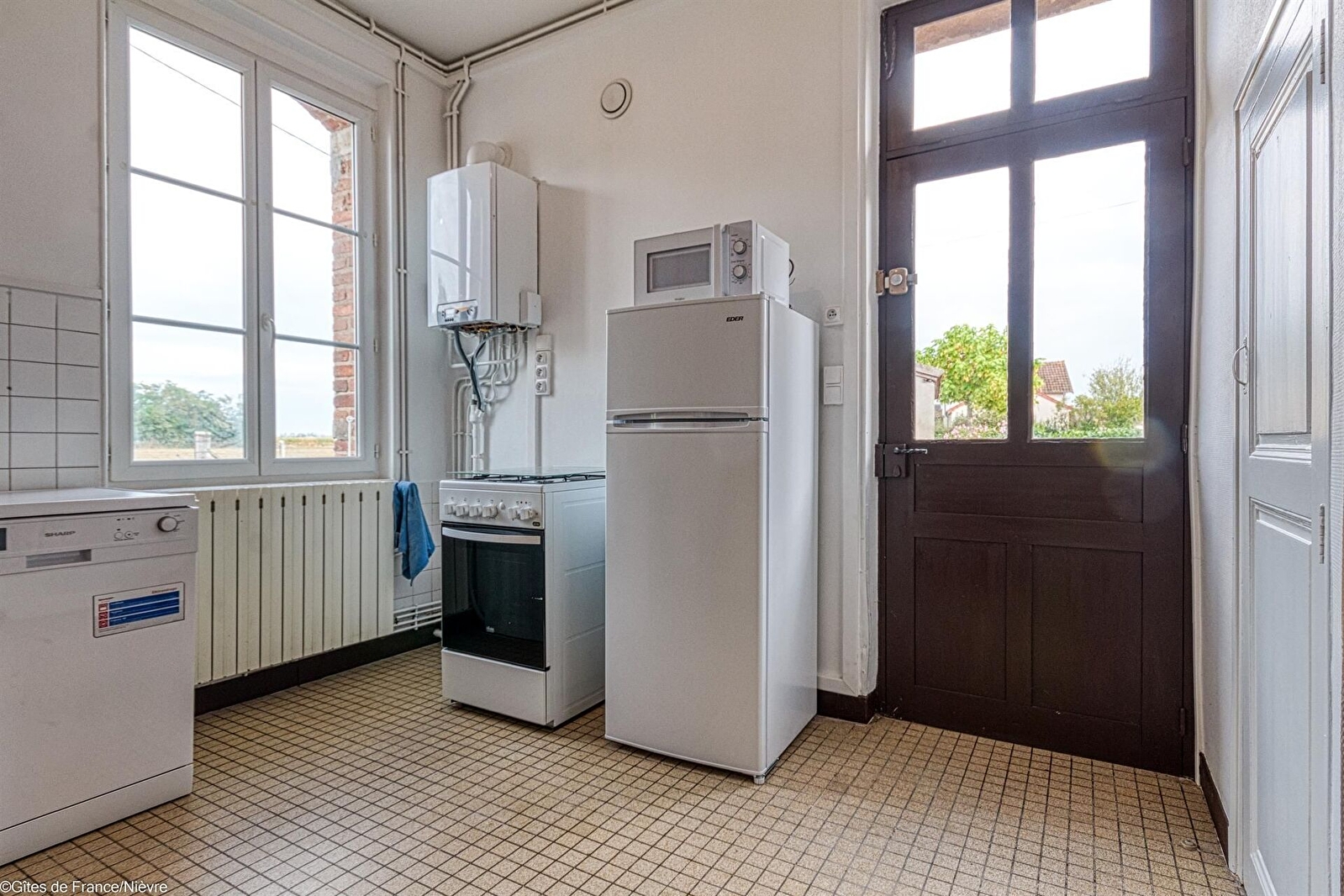 Le terrain est entièrement clos permettant d'accueillir en toute sécurité des enfants et également un animal. Un garage est à votre disposition. L'entrée dans le gîte se fait par la cuisine fonctionnelle (lave-vaisselle, four et micro-ondes, 3 plaques au gaz + 1 électrique); une pièce à vivre avec espace détente et télé; un wc indépendant; une salle de bain (baignoire); à l'étage 3 chambres : 1 avec 1 lit 90x190, la 2ème avec 1 lit 160x200 et la dernière avec 2 lits 90x190. Attention l'escalier pour accéder à l'étage n'est pas sécurisé par une barrière pour les enfants en bas age.