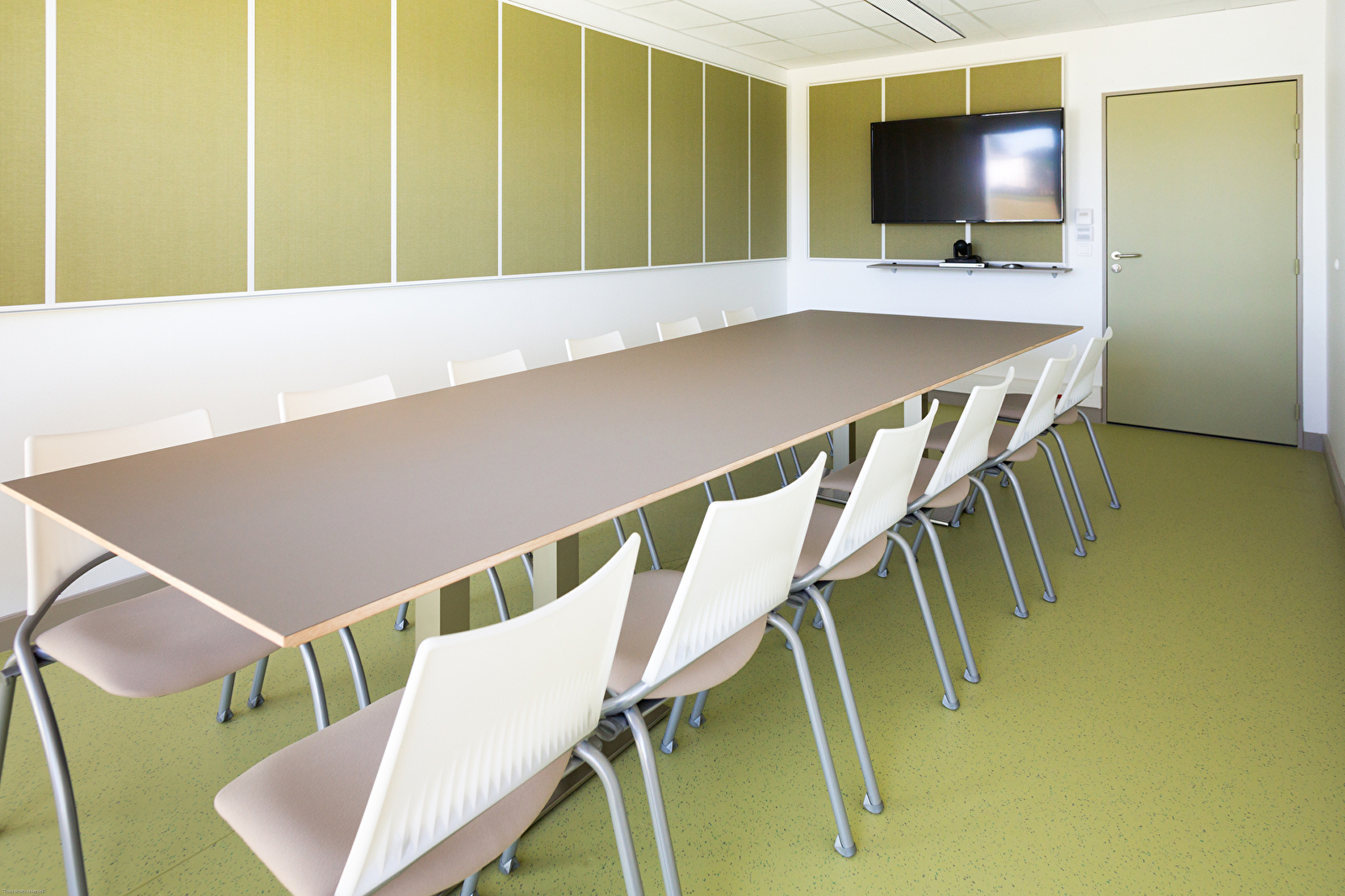 Une salle de conférence équipée : du système de visio-conférence, d’un vidéoprojecteur fixé au plafond, d’un écran mural et d’un écran de retour, d’une sonorisation : micros de table, micros à main, d’un mobilier confortable et convivial, d’un éclairage modulable et plus faible pour une bonne prise de note des participants. Paperboard, bloc-notes, table d’appoint sont également disponibles. La salle de conférence est équipée d’une connexion Wi-fi très haut débit.